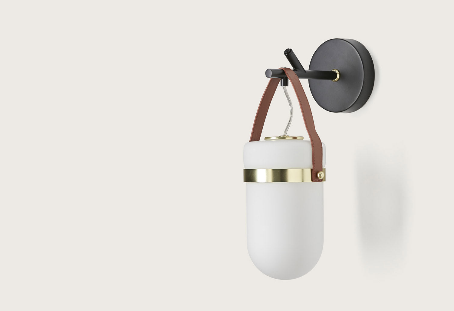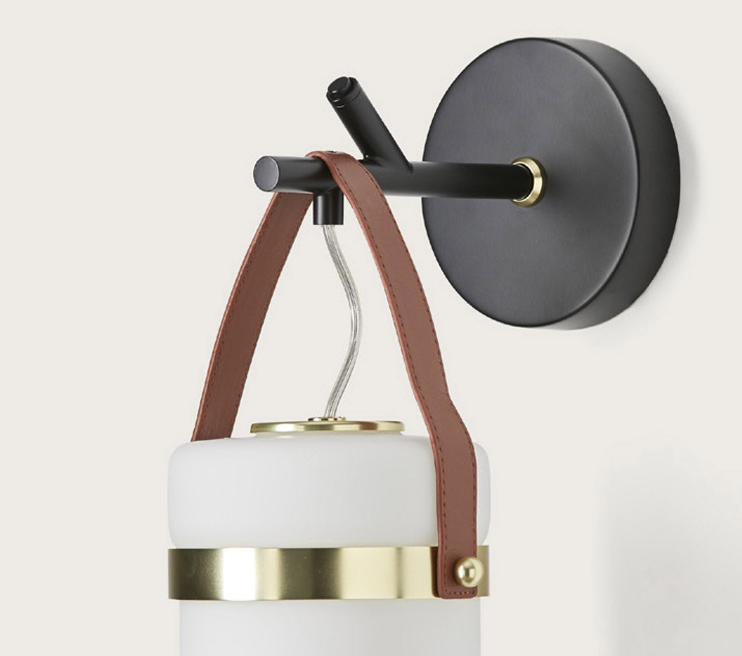 Almon wall light from the renowned Spanish manufacturer Aromas Del Campo, designed by the talented Pepe Fornas. Almon is a design gem that combines simplicity with elegance, bringing an extraordinary aesthetic experience to your space. This wall-mounted light features a quality metal base in the form of a thin arm, on which hangs a glass light element, decorated with a leather strap and gold trim. The result is a very elegant and tasteful light that will accentuate the unique design of your interior. The Almon is designed for a G9 bulb, allowing for optimum performance and a choice of light colour temperature.