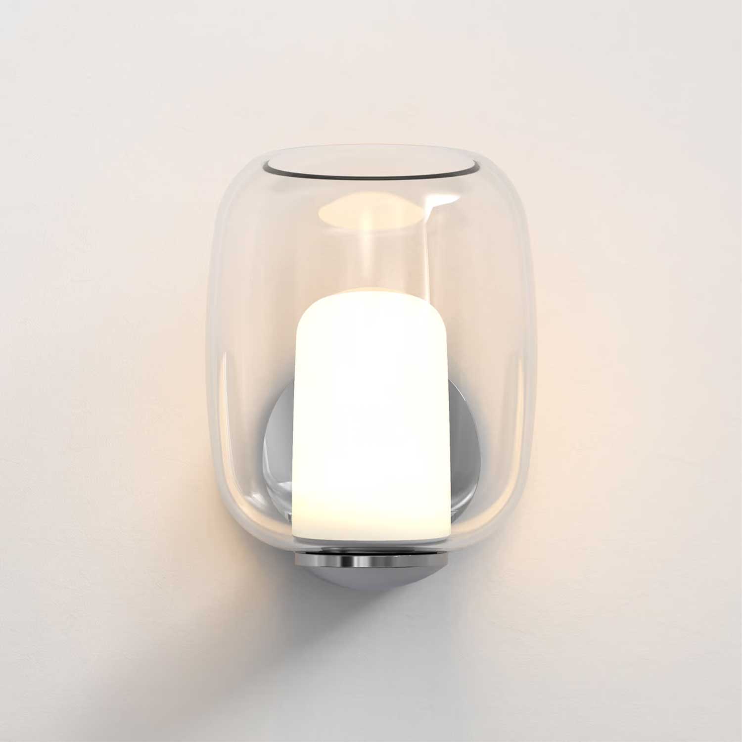 The design of the Aquina wall lamp from the English manufacturer Astro is characterised by elegant organic curves that add softness and style to the space. Universal upward or downward installation offers flexibility in lighting, while the blown glass shade provides a pleasant diffused light, ideal for use next to a mirror. The seamless metal handle, available in shiny chrome or black, adds a modern touch and sturdiness. Aquina thus combines functionality with elegant design, making it a distinctive feature in any bathroom.