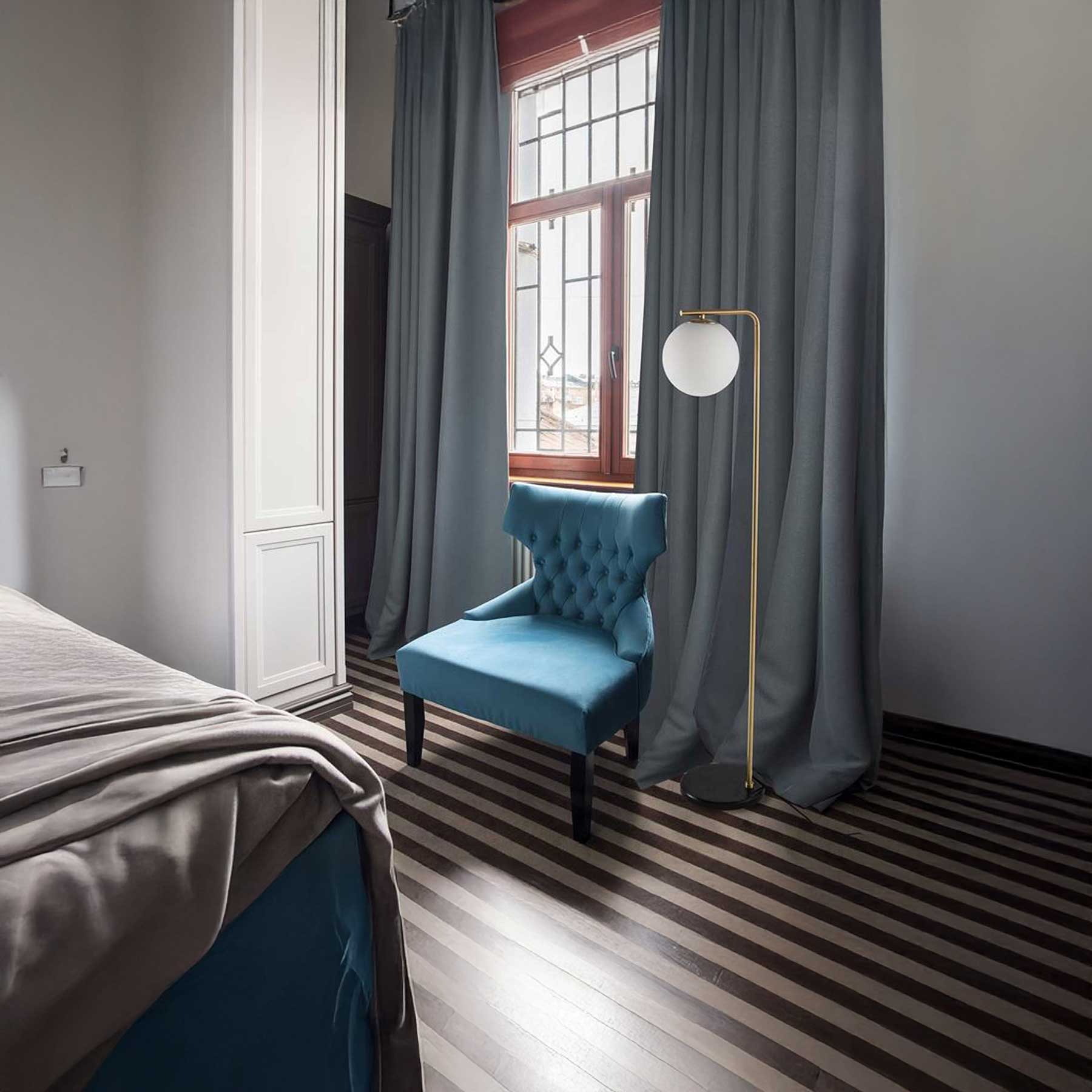 The AlvarezFloor light from the Greek company Nova Luce is an elegant combination of modern design and classic aesthetics. It consists of a slender metal rod in brass finish, topped with a spherical shade in frosted white glass that diffuses the light pleasantly. Stability is ensured by the black marble base. The luminaire is designed for an E27 bulb, which allows the use of different types of light sources according to preference. Thanks to its minimalist yet sophisticated look, it is suitable for both modern and classic interiors as complementary lighting for example in the living room, bedroom or reading corner.