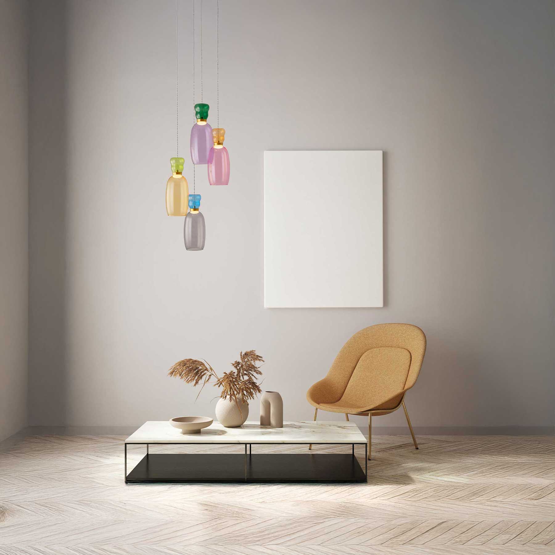 Elegant glass construction of the Pluma pendant luminaire
