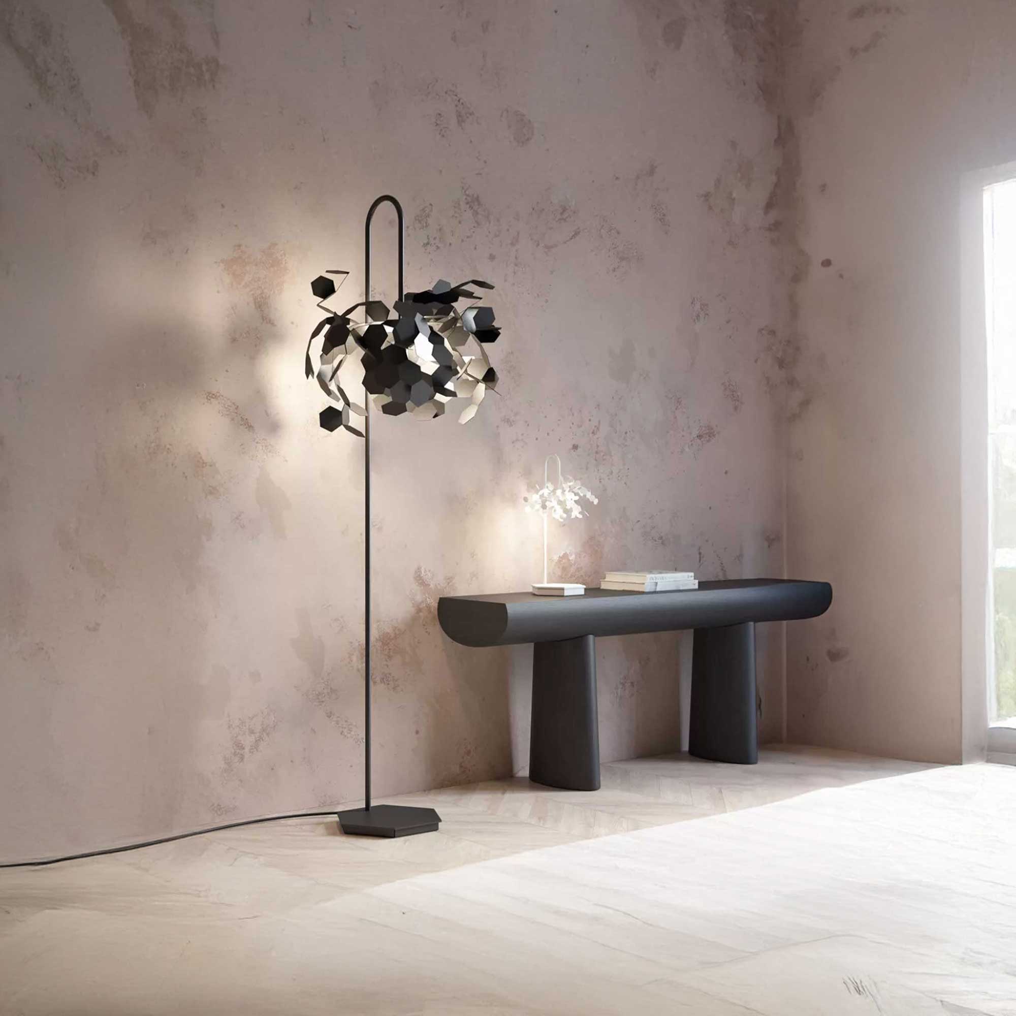 The Andromeda LED Floor light from the renowned Italian brand Zava, designed by designer Pole Uliano, is an exceptional combination of modern artistic concept and energy-saving technology. Its main feature is the hexagonal metal diffusers, which can be manually shaped, allowing the user to customise the look of lighting to their exact liking. Thanks to the integrated LED source, Andromeda offers a strong yet pleasantly soft light that is low in consumption and long-lasting. When switched on, light produces spectacular light patterns and shadow patterns that enhance the surrounding walls and floor, creating an atmosphere with an artistic touch. The Andromeda LED Floor lamp is the ideal choice for those looking for designer floor with individual shaping options that is functional, economical and aesthetically distinctive at the same time.