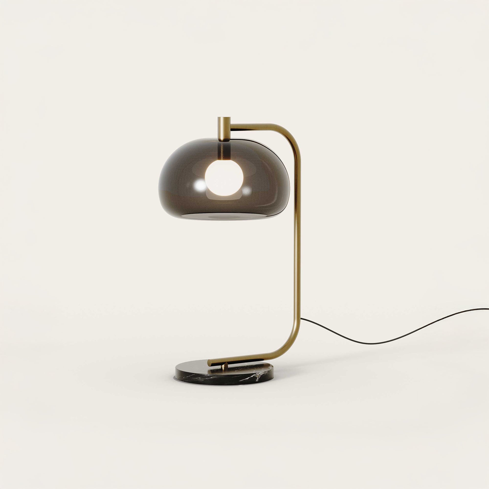 Bordlampen Cloud fra det spanske mærke Aromas del Campo har et elegant og moderne design, der smukt vil passe til et skrivebord, et natbord eller en kommode. Den glasdiffusor i form af en fin kugle er placeret på en solid metalfod, der fås i mat sort eller patineret guld, så den let kan matches med øvrige møbler i indretningen. Diffusoren fås i klart glas eller i en røget udgave i tre attraktive nuancer – brun-grøn, ravfarvet og grå – hvilket gør det muligt at skabe en behagelig atmosfære, der passer til din stil. Bordlampen er udstyret med en G9 5W-pære, der udsender et varmt lys på 2700K, har en lysstrøm på 450 lm og er dæmpbar, så du nemt kan justere lysintensiteten efter behov. Bordlampen Cloud er ideel til belysning af læsekroge, natborde og arbejdsflader, hvor du vil sætte pris på dens diskrete design og behagelige lys.