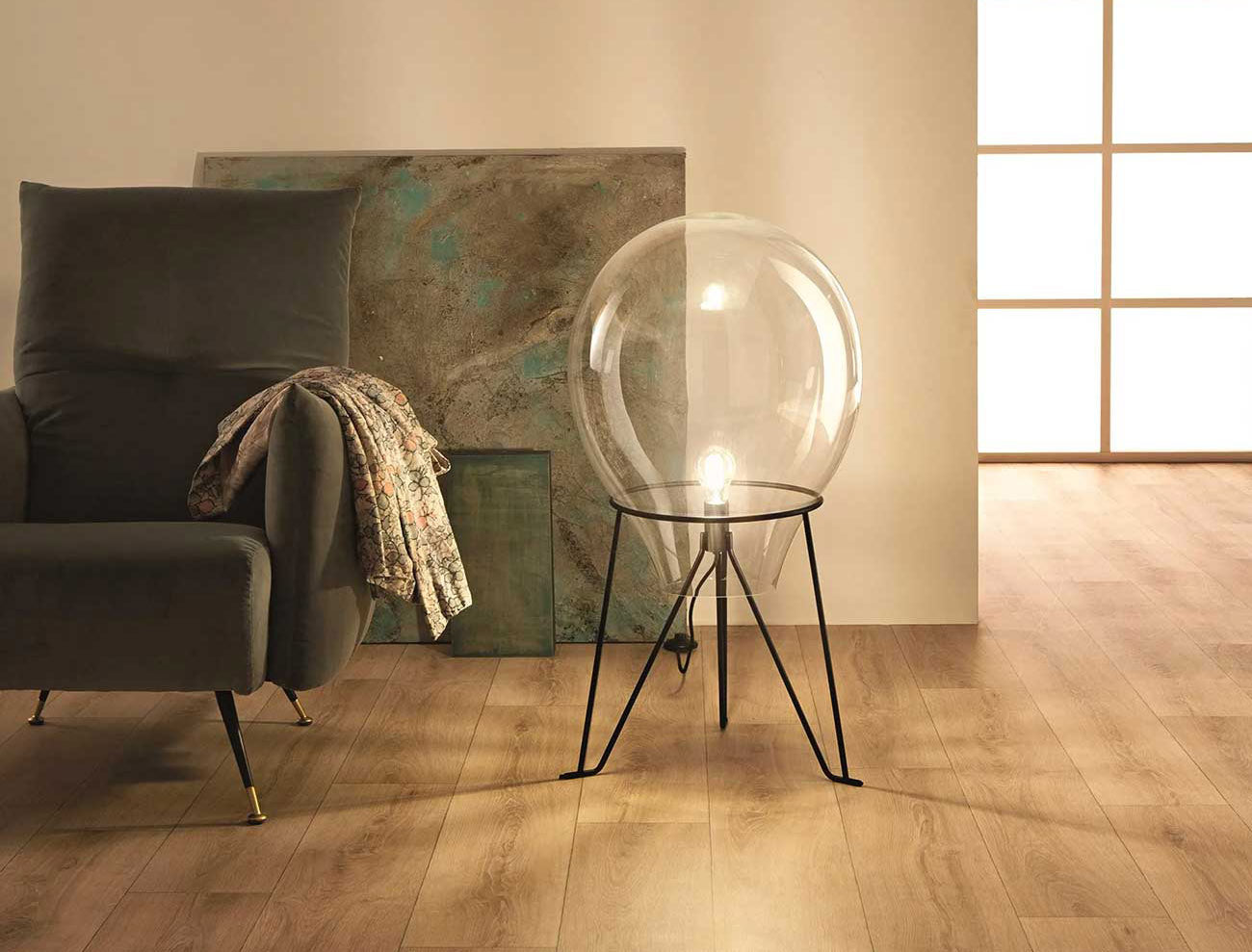 Skleněná stojací lampa Azuma