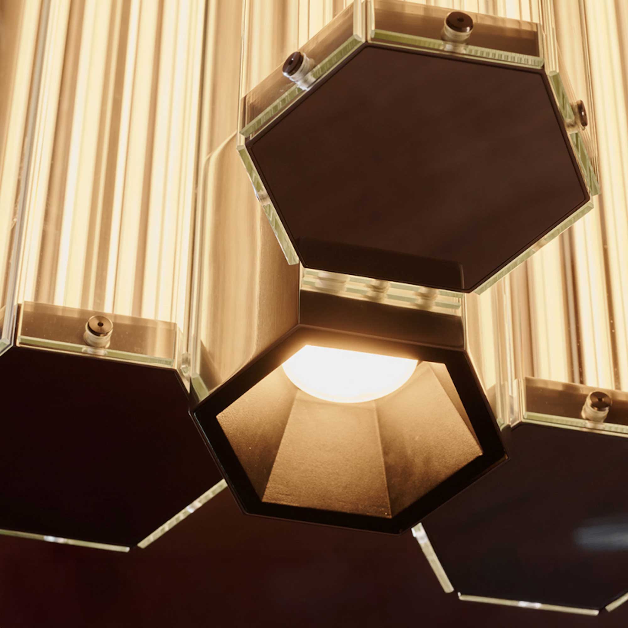 Závěsné svítidlo SuperWire od italské značky Flos, navržené studiem Formafantasma v roce 2025, představuje první modulární kolekci svítidel tohoto designérského dua pro Flos. Tento poetický a zároveň technicky promyšlený projekt čerpá inspiraci z odkazu sklářských mistrů 20. století. Svítidlo je tvořeno šestihrannými plochami z rovného skla, propojenými leštěnými hliníkovými prvky, a jeho celé tělo rozsvěcuje tenký, měkký a flexibilní LED pásek o délce až jednoho metru, který vydává teplé a rovnoměrné světlo. Tato LED technologie je snadno vyměnitelná, což je výjimečné mezi LED svítidly bez klasických žárovek. Závěsná varianta navíc obsahuje skrytý směrový modul pro akcentní osvětlení stolních ploch, který doplňuje měkké, rozptýlené světlo vertikálních modulů. SuperWire je koncipováno jako systémové řešení, které lze flexibilně rozšiřovat a přizpůsobit různým projektovým potřebám, čímž se stává ideálním prvkem pro vytváření světelných instalací se silným sochařským výrazem.