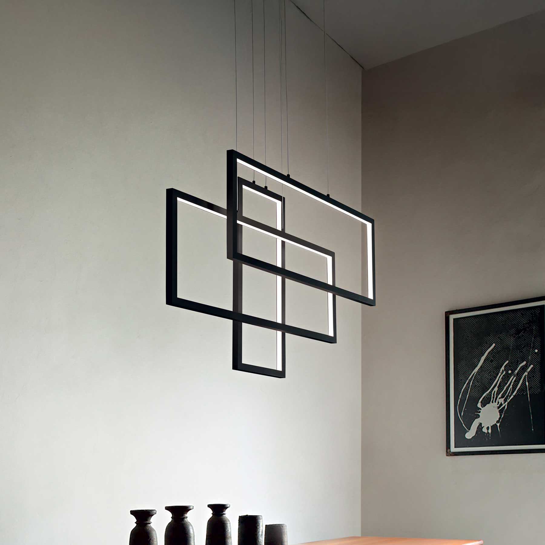 Díky nastavitelným kabelům a více tvarovým variantám (čtverec, kruh, obdélník) můžete se svítidlem Frame experimentovat – vytvořit symetrickou kompozici nad jídelním stolem nebo dynamickou asymetrickou instalaci v obývacím prostoru. LED technologie navíc zaručuje nejen dlouhou životnost, ale i možnost kombinace s chytrými systémy pro regulaci jasu.