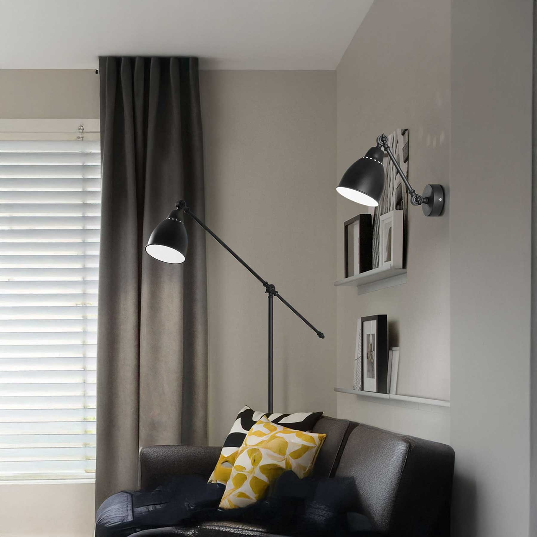 Stojací interiérové svítidlo Newton od italské značky Ideal Lux je elegantní doplněk moderních interiérů s chromovaným kovovým rámem a difuzorem, který je k dispozici v provedení saténový nikel nebo matná černá barva. Svítidlo má nastavitelné rameno pro regulaci výšky a úhlu osvětlení a nastavitelný difuzor s bílou vnitřní sklovinovou úpravou pro měkké rozptýlené světlo. Je určeno pro žárovky s paticí E27 a skvěle se kombinuje s nástěnnými svítidly ze stejné kolekce. Díky svému nadčasovému designu a kvalitnímu provedení se hodí do obývacích pokojů, pracoven nebo stylových kanceláří, kde podtrhne čisté linie a sofistikovaný vzhled interiéru.