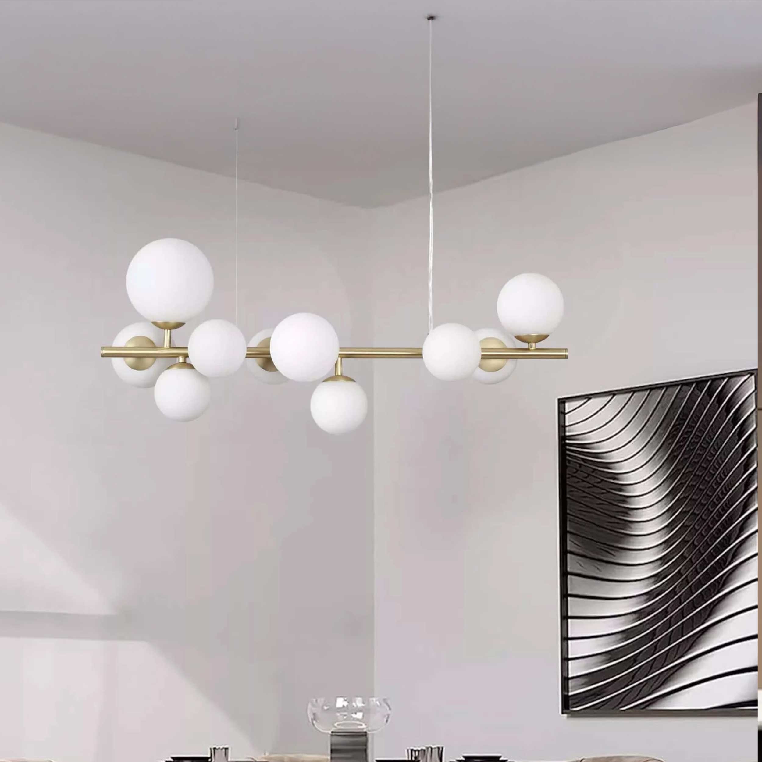 Perlage-pendellampen fra den italienske producent Ideal Lux i lineært design er en elegant kombination af moderne design og præcis udførelse. Metalkonstruktionen sikrer stabilitet og visuel lethed, mens diffusorer af mundblæst glas giver en blid og jævn lysspredning, der skaber en behagelig atmosfære i interiøret. Lysarmaturens lineære form er især ideel til belysning af spiseborde, køkkenøer eller repræsentative rum. Ophængssystemet, der består af stålwirer med gummibelægning, gør det nemt at justere højden efter rummets indretning. Belysningen bruger lyskilder med G9-fatning, som giver fleksible muligheder for valg af lysintensitet og lyskarakter.