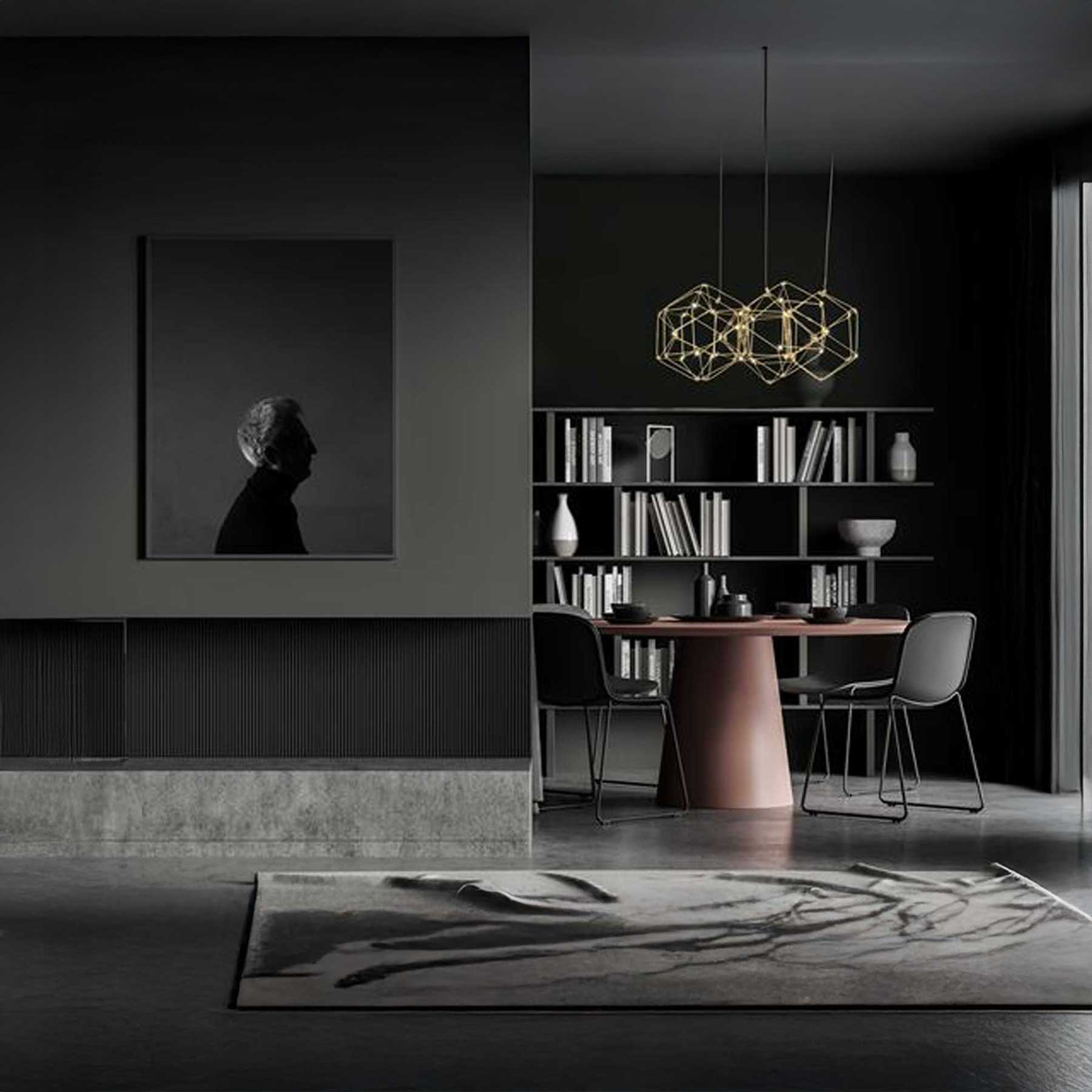 Jedinečnost svítidla Nebula spočívá také v absenci klasického stínidla – světelné body jsou součástí samotné konstrukce a rozprostírají světlo přímo skrz otevřenou kovovou strukturu. Tento přístup nejen snižuje hmotnost svítidla, ale zároveň zajišťuje volný rozptyl světla a vytváří zajímavé stíny na okolních plochách, což dodává prostoru dynamiku a vizuální hloubku.